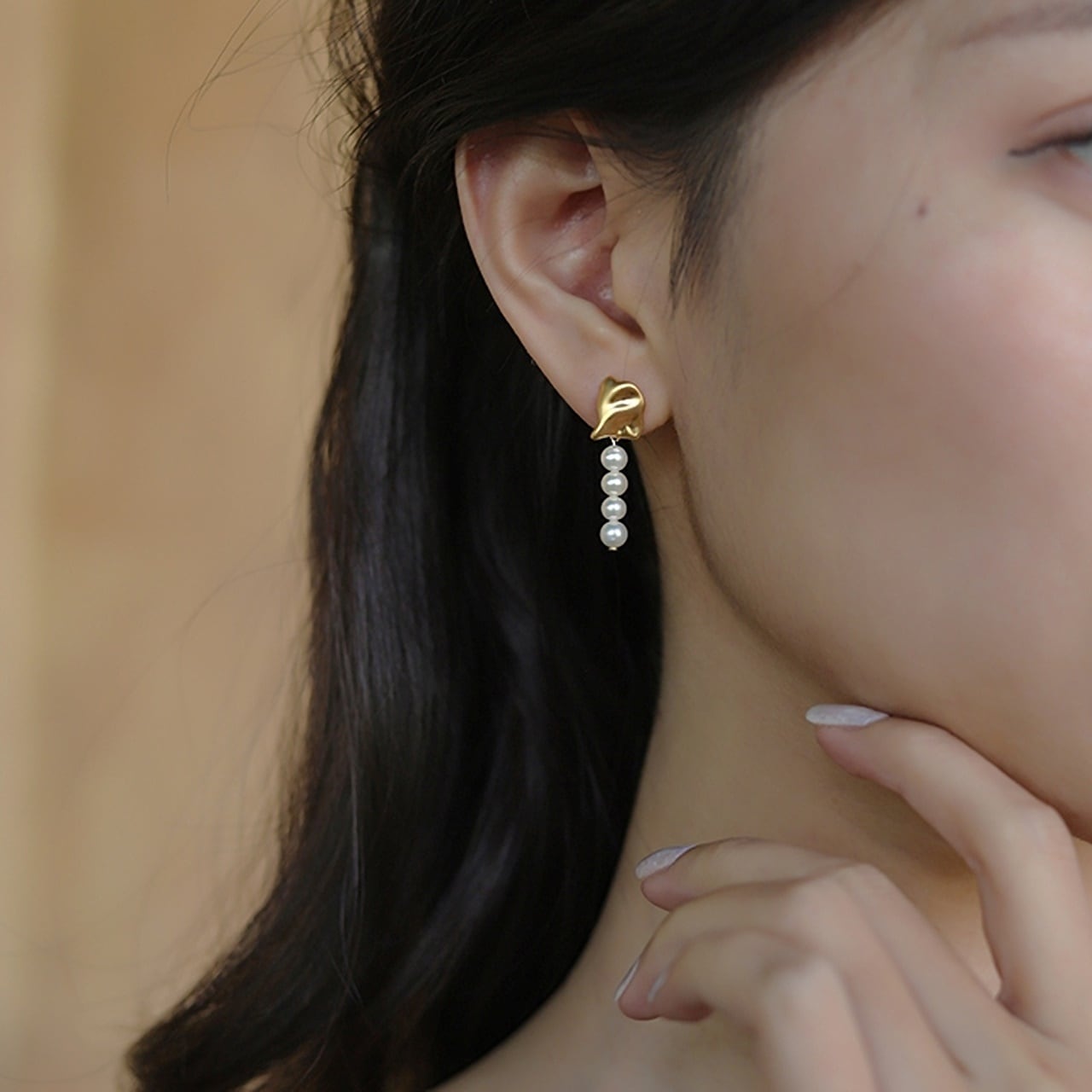 アシンメトリーデザインでこなれ感のあるパールピアス。