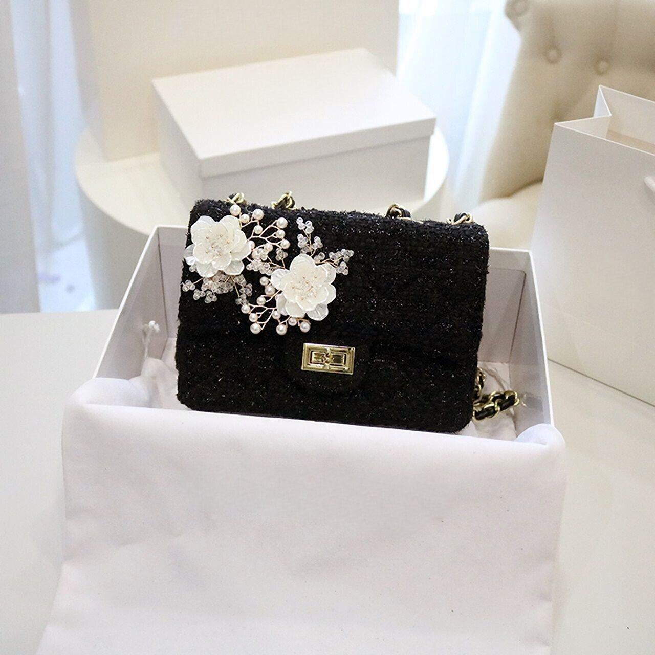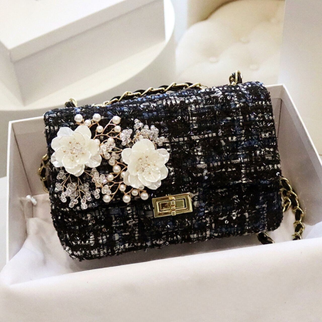 ツイード素材で華やかなチェーンショルダーバッグ。