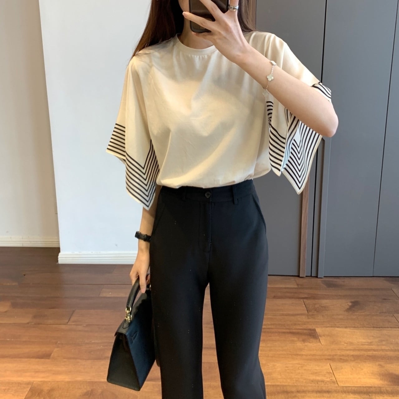 ゆったりとしたスリーブデザインが上品で美しいラウンドネックトップス。 気になる腕周りをしっかりカバーしながら、適度に抜け感のあるエレガントスタイルに◎ 【サイズ】 S 肩幅/38cm 袖丈/27cm 胸囲/100cm 着丈/67cm M 肩幅/39cm 袖丈/28cm 胸囲/104cm 着丈/68cm L 肩幅/40cm 袖丈/29cm 胸囲/108cm 着丈/69cm ※1〜3cmの誤差が生じる場合がございます 【素材】 コットン100%、(袖部分:ポリエステル100%) 【カラー】 アイボリー 【お届けについて】 当ショップはお客様の商品を1点1点検品・梱包をした後、海外からの直接発送となります。 そのため発送までにご決済から3週間前後のお時間を頂いております。 お時間にゆとりを持ってご購入頂くことをおすすめいたします。 ◼️注意事項 ・タイミングによっては商品在庫切れにより注文キャンセルとさせていただく恐れもございますので、予めご了承くださいませ。 ・こちらは輸入品となります。日本製とは検品基準が異なる為、新品未使用品でもごくわずかな汚れやほつれがある場合もございます。 ・仕入れ工場を変えることがあるため、記載サイズと若干異なる場合がございます。 ・商品の色味は、お手持ちのスマートフォンの画面によって実物と若干異なる場合がございます。 ・イメージ違いやサイズ交換等、お客さまご都合による交換、返品は対応出来かねます。 ———————————— ご購入前にこちらをお読みください → https://www.alliede.shop/about ————————————