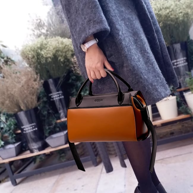エレガントなデザインが魅力のコントラストカラーバッグです。長方形でシンプルながらも個性的なデザインは、どんなスタイルにもマッチします。