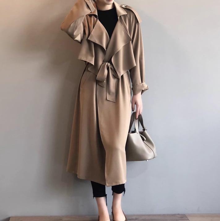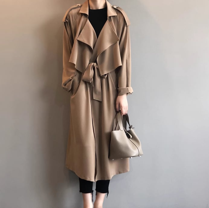洗練されたスタイルを演出する一着。 ウエストのベルトでメリハリをつけられるので、スタイルアップも叶います。 軽やかな生地感と独特のドレープが、女性らしさを引き立てます。 【サイズ】 M /着丈 110cm /バスト 114cm /袖丈 68cm L /着丈 111cm /バスト 118cm /袖丈 69cm ※1〜3cmの誤差が生じる場合がございます 【素材】 ポリエステル 【カラー】 ベージュ・ブラック 【お届けについて】 当ショップはお客様の商品を1点1点検品・梱包をした後、海外からの直接発送となります。 そのため発送までにご決済から3週間前後のお時間を頂いております。 お時間にゆとりを持ってご購入頂くことをおすすめいたします。 ◼️注意事項 ・タイミングによっては商品在庫切れにより注文キャンセルとさせていただく恐れもございますので、予めご了承くださいませ。 ・こちらは輸入品となります。日本製とは検品基準が異なる為、新品未使用品でもごくわずかな汚れやほつれがある場合もございます。 ・仕入れ工場を変えることがあるため、記載サイズと若干異なる場合がございます。 ・商品の色味は、お手持ちのスマートフォンの画面によって実物と若干異なる場合がございます。 ・イメージ違いやサイズ交換等、お客さまご都合による交換、返品は対応出来かねます。 ———————————— ご購入前にこちらをお読みください → https://www.alliede.shop/about ————————————