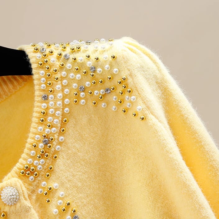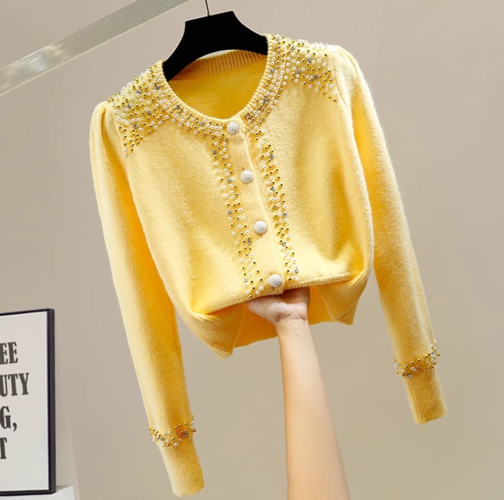 繊細なパールビーズが贅沢に飾られたカーディガン。シンプルなデザインに華やかさをプラスし、上品で洗練されたスタイルを演出します。特別な日にも、日常使いにもぴったりの一着です。 【サイズ】 ワンサイズ /着丈 46cm /バスト 90-120cm /袖丈 36cm /肩幅 58cm ※1〜3cmの誤差が生じる場合がございます 【素材】 ポリエステル 【カラー】 イエロー・オフホワイト・ブラック 【お届けについて】 当ショップはお客様の商品を1点1点検品・梱包をした後、海外からの直接発送となります。 そのため発送までにご決済から3週間前後のお時間を頂いております。 お時間にゆとりを持ってご購入頂くことをおすすめいたします。 ◼️注意事項 ・タイミングによっては商品在庫切れにより注文キャンセルとさせていただく恐れもございますので、予めご了承くださいませ。 ・こちらは輸入品となります。日本製とは検品基準が異なる為、新品未使用品でもごくわずかな汚れやほつれがある場合もございます。 ・仕入れ工場を変えることがあるため、記載サイズと若干異なる場合がございます。 ・商品の色味は、お手持ちのスマートフォンの画面によって実物と若干異なる場合がございます。 ・イメージ違いやサイズ交換等、お客さまご都合による交換、返品は対応出来かねます。 ———————————— ご購入前にこちらをお読みください → https://www.alliede.shop/about ————————————