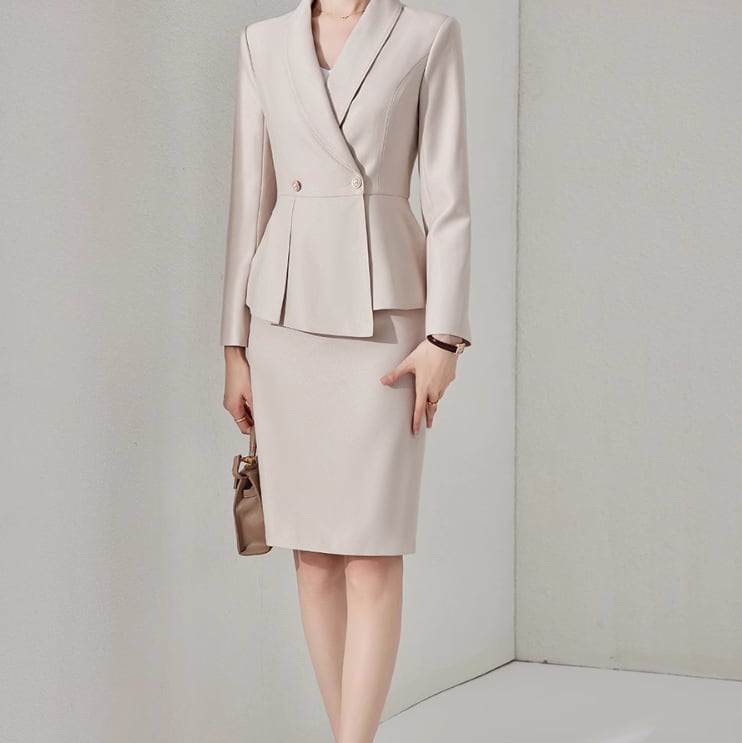 パールボタンがアクセントになっており、上品な印象を与えるフレアジャケットスカートスーツ。立体的なデザインが施されており、動きのある印象を与えます。 【サイズ】 ジャケット S /着丈 66cm /バスト 89cm /肩幅 37cm /ウエスト 72cm /袖丈 56cm M /着丈 67cm /バスト 93cm /肩幅 38cm /ウエスト 76cm /袖丈 57cm L /着丈 68cm /バスト 97cm /肩幅 39cm /ウエスト 80cm /袖丈 58cm XL /着丈 69cm /バスト 101cm /肩幅 40cm /ウエスト 84cm /袖丈 59cm 2XL /着丈 70cm /バスト 105cm /肩幅 41cm /ウエスト 88cm /袖丈 60cm 3XL /着丈 71cm /バスト 109cm /肩幅 42cm /ウエスト 92cm /袖丈 61cm スカート S /スカート丈 56cm /ウエスト 68cm /ヒップ 88cm M /スカート丈 57cm /ウエスト 72cm /ヒップ 92cm L /スカート丈 58cm /ウエスト 76cm /ヒップ 96cm XL /スカート丈 59cm /ウエスト 80cm /ヒップ 100cm 2XL /スカート丈 60cm /ウエスト 84cm /ヒップ 104cm 3XL /スカート丈 61cm /ウエスト 88cm /ヒップ 108cm ※1〜3cmの誤差が生じる場合がございます 【素材】 ポリエステル 【カラー】 オフホワイト 【お届けについて】 当ショップはお客様の商品を1点1点検品・梱包をした後、海外からの直接発送となります。 そのため発送までにご決済から3週間前後のお時間を頂いております。 お時間にゆとりを持ってご購入頂くことをおすすめいたします。 ◼️注意事項 ・タイミングによっては商品在庫切れにより注文キャンセルとさせていただく恐れもございますので、予めご了承くださいませ。 ・こちらは輸入品となります。日本製とは検品基準が異なる為、新品未使用品でもごくわずかな汚れやほつれがある場合もございます。 ・仕入れ工場を変えることがあるため、記載サイズと若干異なる場合がございます。 ・商品の色味は、お手持ちのスマートフォンの画面によって実物と若干異なる場合がございます。 ・イメージ違いやサイズ交換等、お客さまご都合による交換、返品は対応出来かねます。 ———————————— ご購入前にこちらをお読みください → https://www.alliede.shop/about ————————————