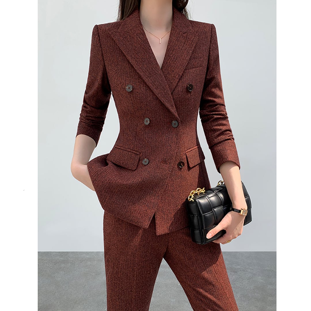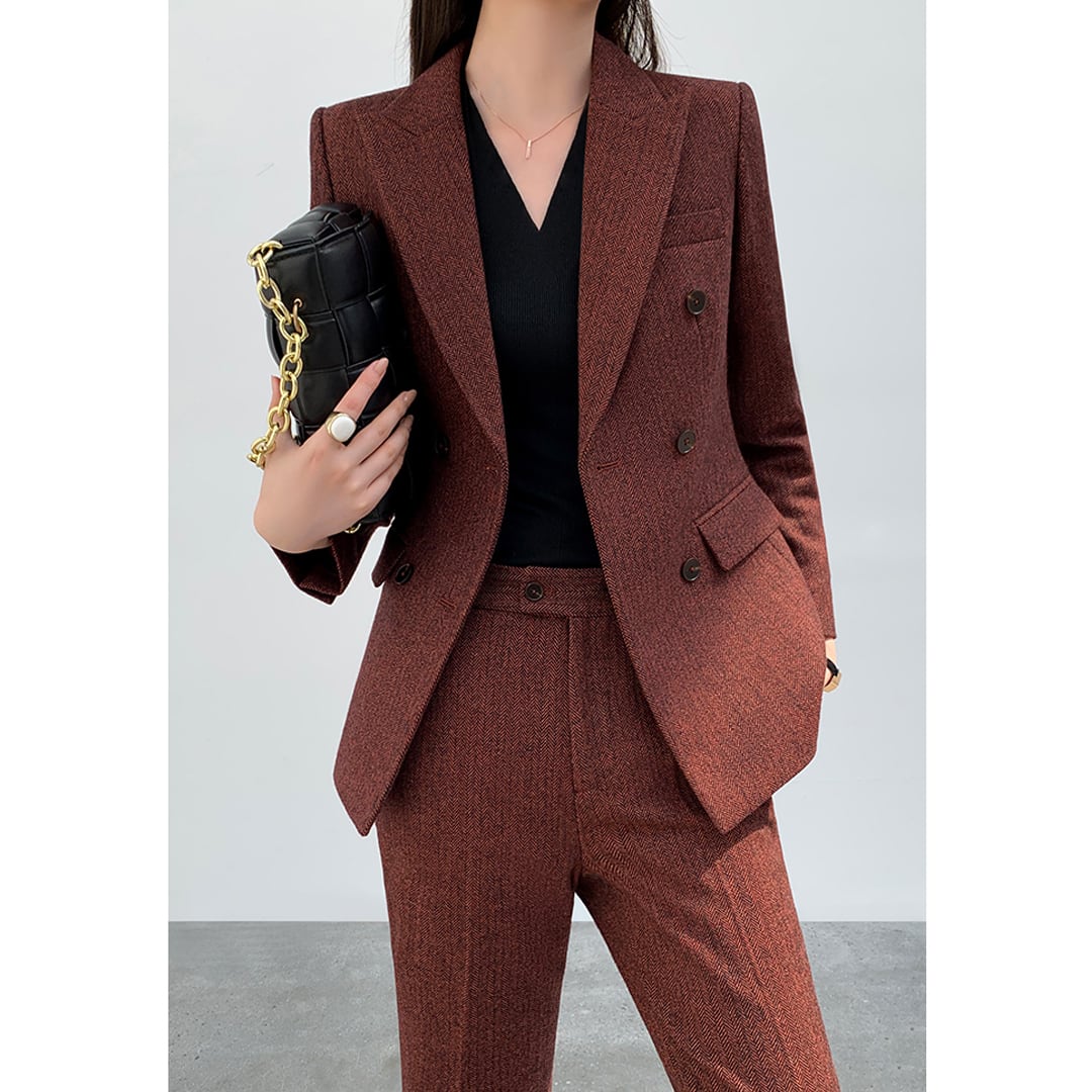 洗練されたヘリンボーン織りとスタイリッシュなダブルブレストデザインで、ビジネスシーンからカジュアルまで幅広く活躍。スリムフィットで女性らしいシルエットを演出します。 【サイズ】 ジャケット S /バスト 88cm /ウエスト 72cm /肩幅 36cm /袖丈 56cm /着丈 63cm M /バスト 92cm /ウエスト 76cm /肩幅 37cm /袖丈 57cm /着丈 64cm L /バスト 96cm /ウエスト 80cm /肩幅 38cm /袖丈 58cm /着丈 65cm XL /バスト 100cm /ウエスト 84cm /肩幅 39cm /袖丈 59cm /着丈 66cm 2XL /バスト 104cm /ウエスト 88cm /肩幅 40cm /袖丈 59.5cm /着丈 67cm パンツ S /着丈 90cm /ウエスト 68cm /ヒップ 89cm M /着丈 91cm /ウエスト 72cm /ヒップ 93cm L /着丈 92cm /ウエスト 76cm /ヒップ 97cm XL /着丈 93cm /ウエスト 80cm /ヒップ 101cm 2XL /着丈 94cm /ウエスト 84cm /ヒップ 105cm ※1〜3cmの誤差が生じる場合がございます 【素材】 ポリエステル 【カラー】 レッドブラウン 【お届けについて】 当ショップはお客様の商品を1点1点検品・梱包をした後、海外からの直接発送となります。 そのため発送までにご決済から3週間前後のお時間を頂いております。 お時間にゆとりを持ってご購入頂くことをおすすめいたします。 ◼️注意事項 ・タイミングによっては商品在庫切れにより注文キャンセルとさせていただく恐れもございますので、予めご了承くださいませ。 ・こちらは輸入品となります。日本製とは検品基準が異なる為、新品未使用品でもごくわずかな汚れやほつれがある場合もございます。 ・仕入れ工場を変えることがあるため、記載サイズと若干異なる場合がございます。 ・商品の色味は、お手持ちのスマートフォンの画面によって実物と若干異なる場合がございます。 ・イメージ違いやサイズ交換等、お客さまご都合による交換、返品は対応出来かねます。 ———————————— ご購入前にこちらをお読みください → https://www.alliede.shop/about ————————————
