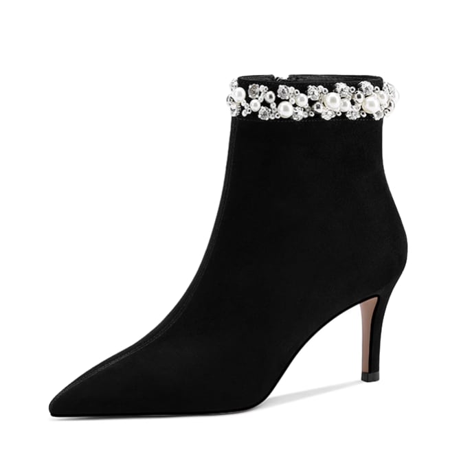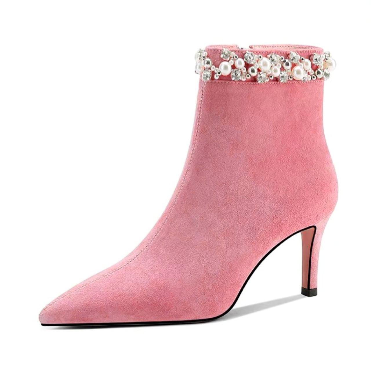 足元を華やかに彩るパールビジューラインショートブーツ。 パールビジューが施されたラインが足首を引き立て、一歩一歩歩くたびに上品な輝きを放ちます。 【サイズ】 22.5cm〜24.5cm ヒール7cm 【素材】 スエード 【カラー】 ブラック・ピンク 【お届けについて】 当ショップはお客様の商品を1点1点検品・梱包をした後、海外からの直接発送となります。 そのため発送までにご決済から3週間前後のお時間を頂いております。 お時間にゆとりを持ってご購入頂くことをおすすめいたします。 ◼️注意事項 ・タイミングによっては商品在庫切れにより注文キャンセルとさせていただく恐れもございますので、予めご了承くださいませ。 ・こちらは輸入品となります。日本製とは検品基準が異なる為、新品未使用品でもごくわずかな汚れやほつれがある場合もございます。 ・仕入れ工場を変えることがあるため、記載サイズと若干異なる場合がございます。 ・商品の色味は、お手持ちのスマートフォンの画面によって実物と若干異なる場合がございます。 ・イメージ違いやサイズ交換等、お客さまご都合による交換、返品は対応出来かねます。 ———————————— ご購入前にこちらをお読みください → https://www.alliede.shop/about ————————————
