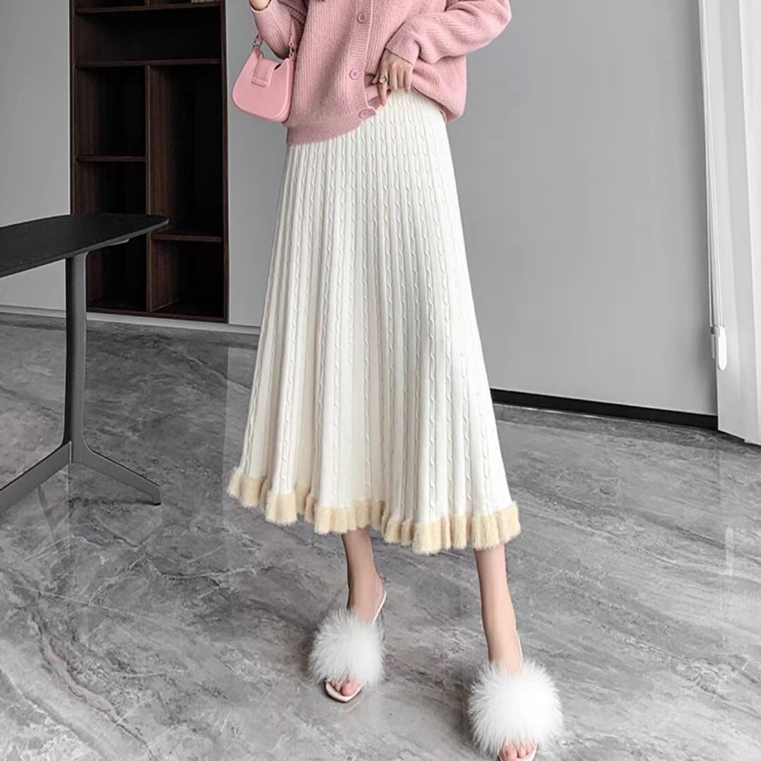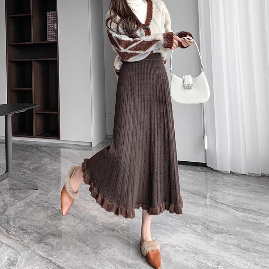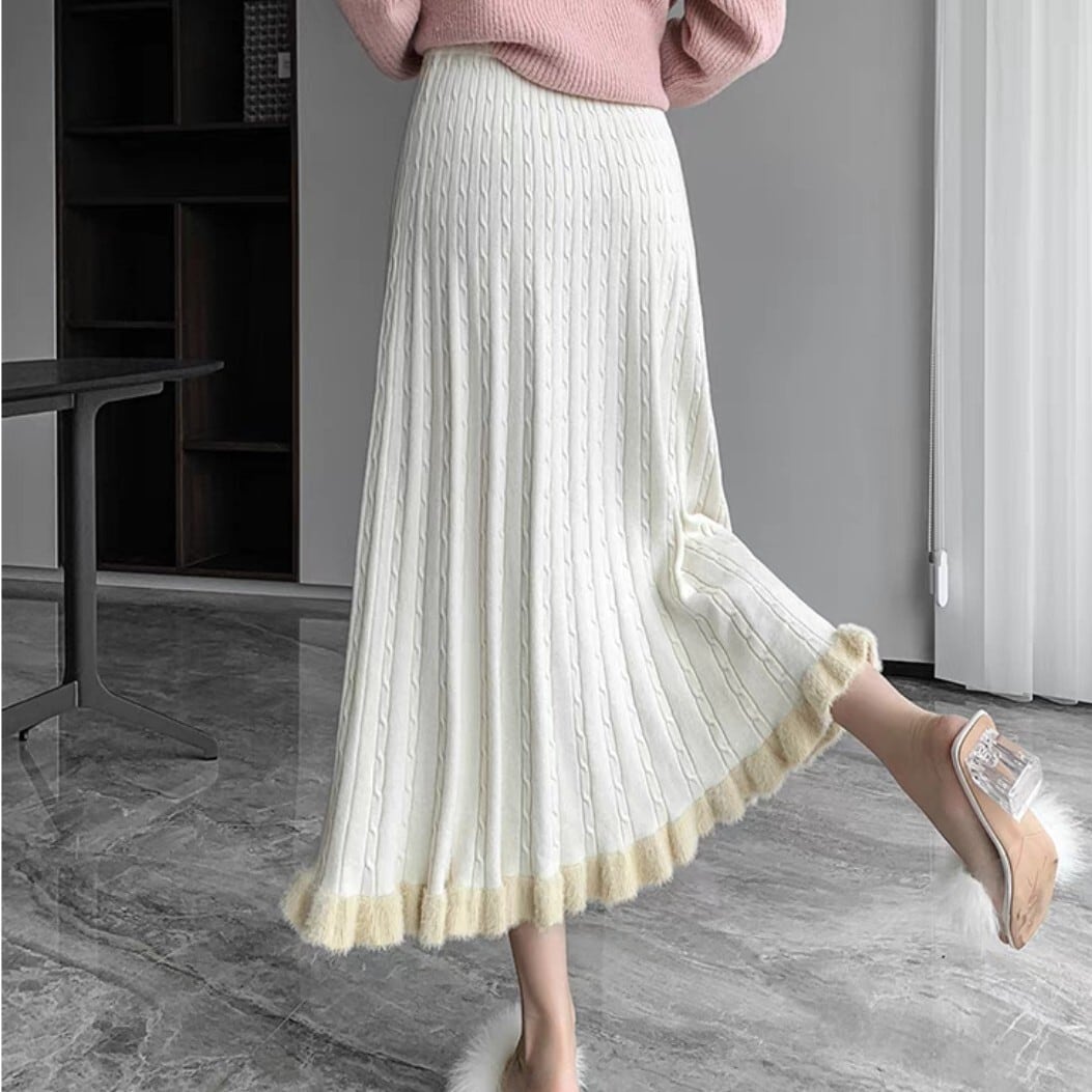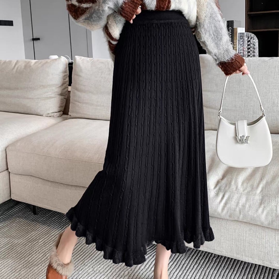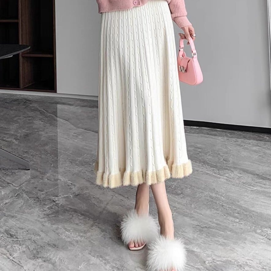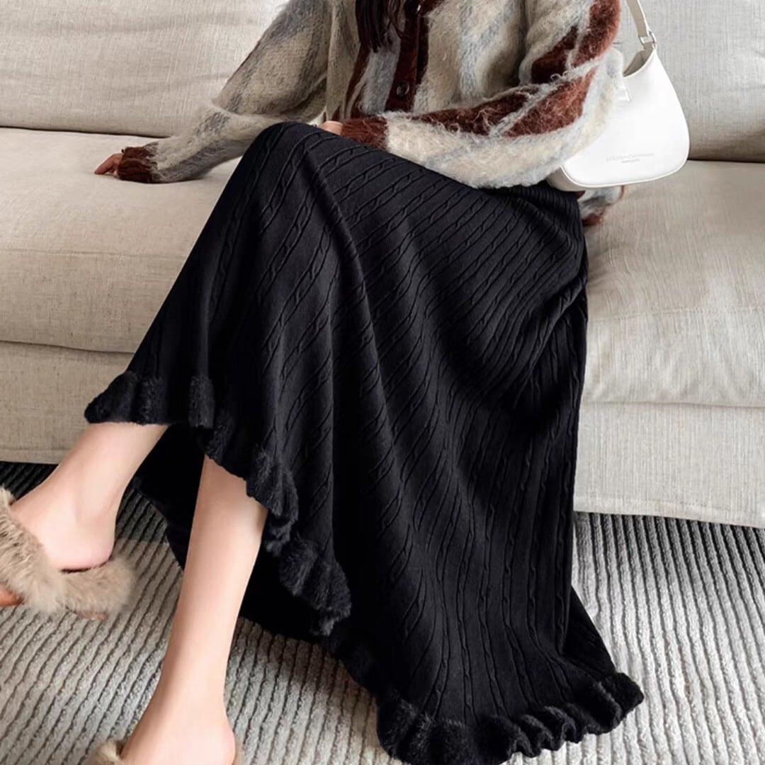 フレアシルエットと毛足のあるヘムが魅力的なケーブルニットスカート。柔らかい履き心地で冬の装いにぴったり。 【サイズ】 S ウエスト/56-76cm 着丈/77cm M ウエスト/58-80cm 着丈/70c8m L ウエスト/60-84cm 着丈/79cm XL ウエスト/62-88cm 着丈/80cm ※1〜3cmの誤差が生じる場合がございます 【素材】 【カラー】 グレー・ブラック・オフホワイト・イエロー・ブラウン 【お届けについて】 当ショップはお客様の商品を1点1点検品・梱包をした後、海外からの直接発送となります。 そのため発送までにご決済から3週間前後のお時間を頂いております。 お時間にゆとりを持ってご購入頂くことをおすすめいたします。 ◼️注意事項 ・タイミングによっては商品在庫切れにより注文キャンセルとさせていただく恐れもございますので、予めご了承くださいませ。 ・こちらは輸入品となります。日本製とは検品基準が異なる為、新品未使用品でもごくわずかな汚れやほつれがある場合もございます。 ・仕入れ工場を変えることがあるため、記載サイズと若干異なる場合がございます。 ・商品の色味は、お手持ちのスマートフォンの画面によって実物と若干異なる場合がございます。 ・イメージ違いやサイズ交換等、お客さまご都合による交換、返品は対応出来かねます。 ———————————— ご購入前にこちらをお読みください → https://www.alliede.shop/about ————————————