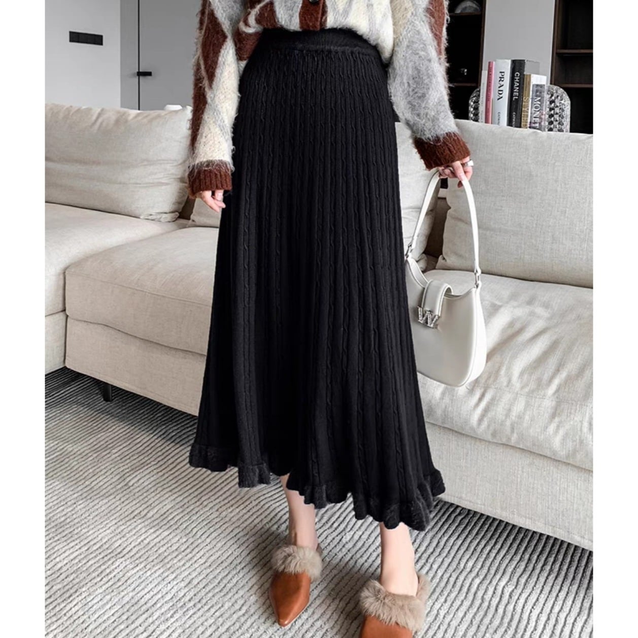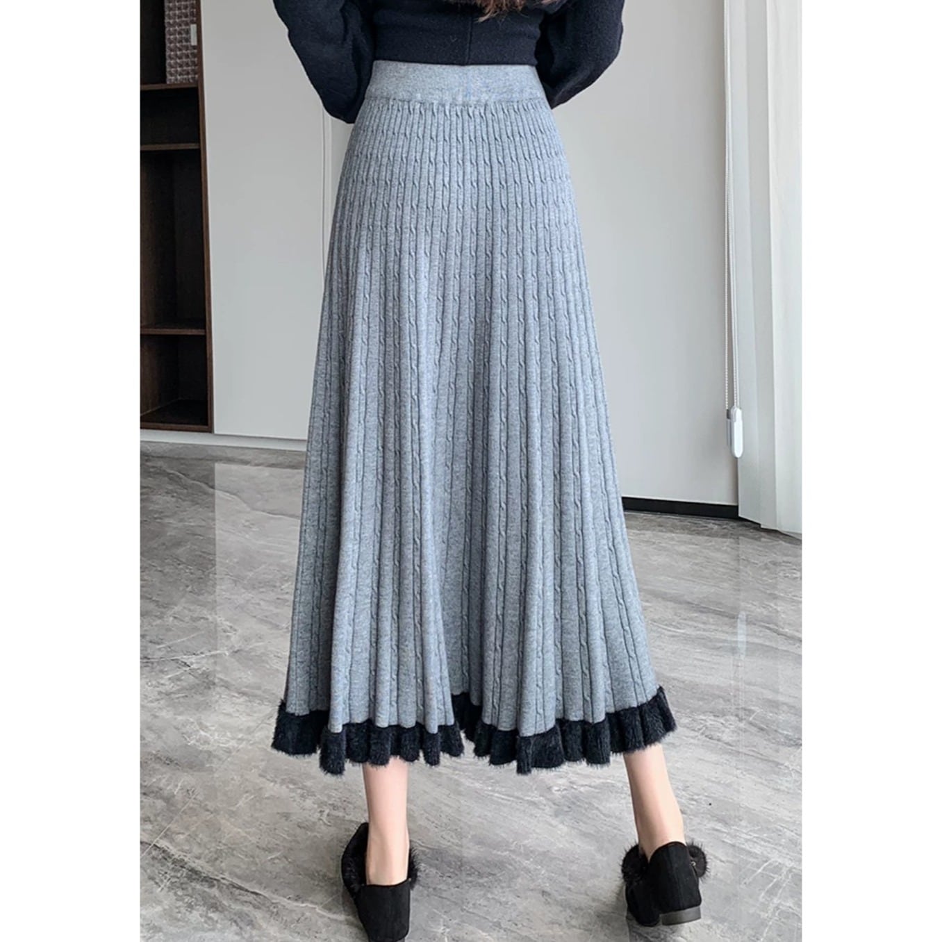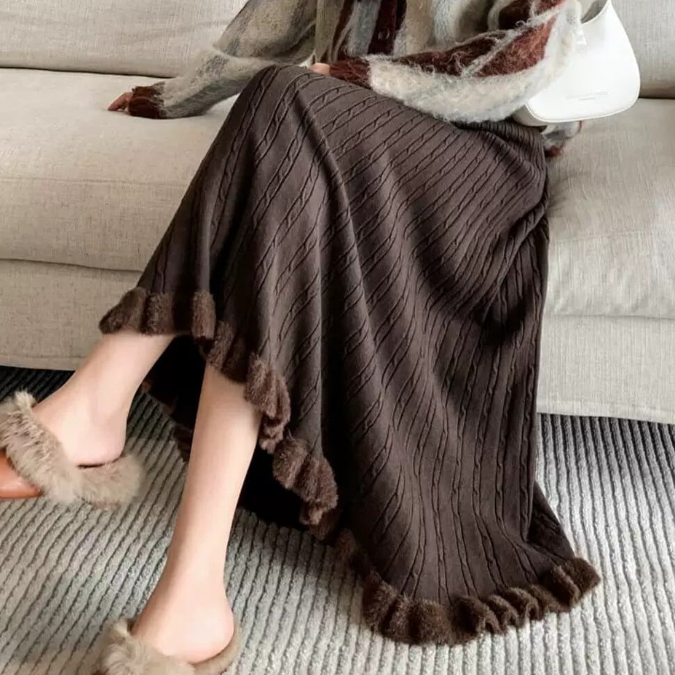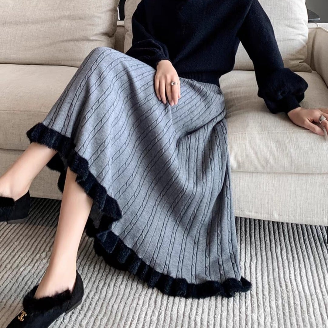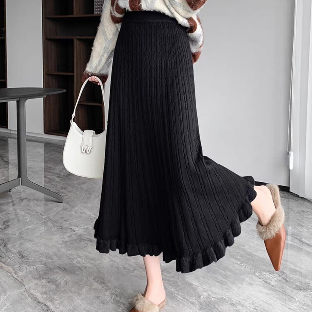 フレアシルエットと毛足のあるヘムが魅力的なケーブルニットスカート。柔らかい履き心地で冬の装いにぴったり。 【サイズ】 S ウエスト/56-76cm 着丈/77cm M ウエスト/58-80cm 着丈/70c8m L ウエスト/60-84cm 着丈/79cm XL ウエスト/62-88cm 着丈/80cm ※1〜3cmの誤差が生じる場合がございます 【素材】 【カラー】 グレー・ブラック・オフホワイト・イエロー・ブラウン 【お届けについて】 当ショップはお客様の商品を1点1点検品・梱包をした後、海外からの直接発送となります。 そのため発送までにご決済から3週間前後のお時間を頂いております。 お時間にゆとりを持ってご購入頂くことをおすすめいたします。 ◼️注意事項 ・タイミングによっては商品在庫切れにより注文キャンセルとさせていただく恐れもございますので、予めご了承くださいませ。 ・こちらは輸入品となります。日本製とは検品基準が異なる為、新品未使用品でもごくわずかな汚れやほつれがある場合もございます。 ・仕入れ工場を変えることがあるため、記載サイズと若干異なる場合がございます。 ・商品の色味は、お手持ちのスマートフォンの画面によって実物と若干異なる場合がございます。 ・イメージ違いやサイズ交換等、お客さまご都合による交換、返品は対応出来かねます。 ———————————— ご購入前にこちらをお読みください → https://www.alliede.shop/about ————————————
