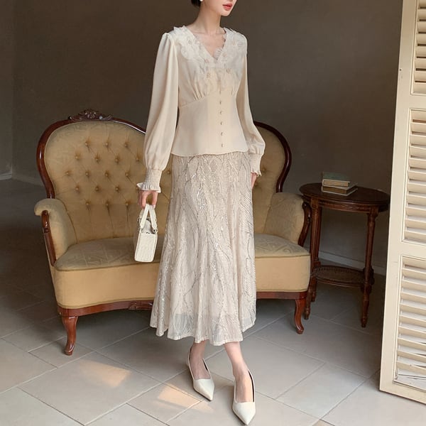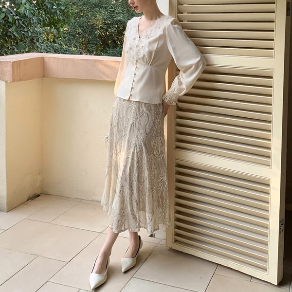 関西テレビ「旬感LIVE とれたてっ!」岩田明子 様に着用していただきました! 立体フラワーモチーフとパールが華やかなVネックブラウス。ふんわりとしたパフスリーブが優雅な印象を演出し、上品なコーデにぴったりの一枚。 【サイズ】 XS /着丈 54.5cm /バスト 86.5cm /肩幅 35cm /袖丈 63.5cm S /着丈 55.1cm /バスト 90.5cm /肩幅 36cm /袖丈 64.5cm M /着丈 56.1cm /バスト 94.5cm /肩幅 37cm /袖丈 65.5cm L /着丈 57.1cm /バスト 98.5cm /肩幅 38cm /袖丈 66.5cm ※1〜3cmの誤差が生じる場合がございます 【素材】 ポリエステル・スパンデックス 【カラー】 アイボリー 【お届けについて】 当ショップはお客様の商品を1点1点検品・梱包をした後、海外からの直接発送となります。 そのため発送までにご決済から3週間前後のお時間を頂いております。 お時間にゆとりを持ってご購入頂くことをおすすめいたします。 ▫️注意事項 ・タイミングによっては商品在庫切れにより注文キャンセルとさせていただく恐れもございますので、予めご了承くださいませ。 ・こちらは輸入品となります。日本製とは検品基準が異なる為、新品未使用品でもごくわずかな汚れやほつれがある場合もございます。 ・仕入れ工場を変えることがあるため、記載サイズと若干異なる場合がございます。 ・商品の色味は、お手持ちのスマートフォンの画面によって実物と若干異なる場合がございます。 ・イメージ違いやサイズ交換等、お客さまご都合による交換、返品は対応出来かねます。 ———————————— ご購入前にこちらをお読みください →https://www.alliede.shop/about ————————————
